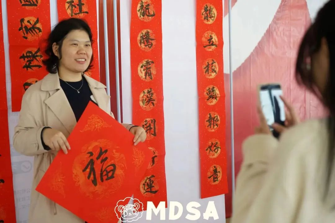 写春联、送“福”字是中华民族数千年来的传统习俗,手写春联更饱含多一份祝福。一幅幅精美春联,飘着淡淡墨香。春联内容既有喜迎龙年、辞旧迎新的美好愿望,也有歌颂家国、大展宏图的励志字句。此次送春联活动,不仅把喜气、福气送给师生们,营造了积极向上、欢乐祥和的节日氛围,更以文明健康、丰富多彩的文化活动丰富师生们的精神文化生活,切实为广大师生办实事。