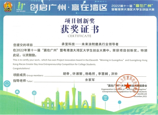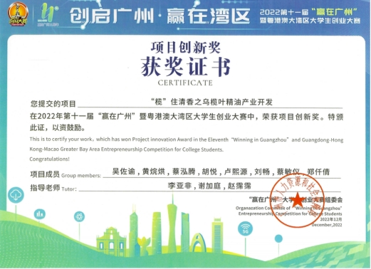 由广州市人力资源和社会保障局主办,中国南方人才市场管理委员会办公室承办的2022年第十一届“赢在广州”暨粤港澳大湾区大学生创业大赛圆满落幕。必赢626net入口《“榄”住清香之乌榄叶精油产业开发》《稚影传媒——融媒体领域专业服务商》《承宣科技——未来涂附磨具行业领导者》《智慧城市ICT》《藏香阁——中药香水》5个项目均荣获项目创新奖,必赢官网荣获优秀组织奖。