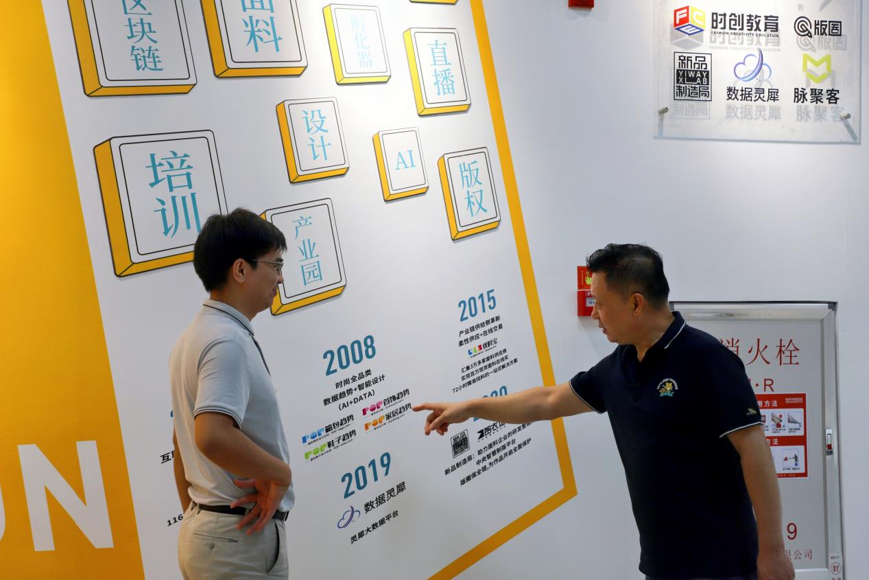 设界科技集团大湾区总经理冯永强陪同彭秀东教授一行参观设界展厅。他表示,设界作为广东省全域产业创新研究院合作单位之一,也在积极推进企业数字化转型。据他介绍,时尚趋势赋能纺织行业数字化转型升级,设界时尚产业创新服务综合体依托POP趋势、时创教育、优料宝、YIWAY新品制造局、全国各地产业地设界五大时尚产业平台,打造以“趋势+面料+设计+培训+展贸+数据”为服务体系内容的大数据数字时尚产业服务综合体,致力于为纺织行业提供时尚产业孵化配套综合服务。