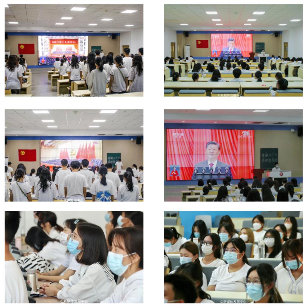 10月16日上午,举世瞩目的中国共产党第二十次全国代表大会在北京人民大会堂隆重开幕。必赢官网团委组织四会校区各校级学生组织、二级学院团支部书记、学生社团等师生代表近200人在8号楼108、6号楼201课室集体观看中国共产党第二十次全国代表大会开幕。其他华商学子主动进行线上线下学习,认真聆听学习习近平总书记代表第十九届中央委员会所作的工作报告。